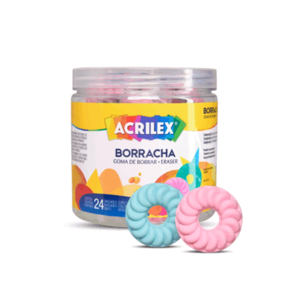 A Acrilex, uma empresa líder em produtos de artesanato e escolar, oferece a você a Borracha em forma de Biscoitinho para você apagar se divertindo. Foi projetada para satisfazer as necessidades dos professores, alunos e amantes do artesanato, pois oferece mais precisão na hora de apagar. Não danifica a superfície do papel. Ela tem um design manuseável que ajuda a obter uma boa aderência, evitando que a borracha escorregue das mãos enquanto você apaga