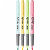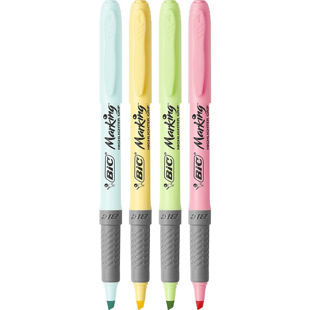 O Marcador de Texto com Grip 4 cores Pastéis BIC Marking - tendência no mercado de papelaria. O Marcador de Texto com Grip 4 cores Pastel BIC Marking veio para acompanhar a tendência de cores no mercado de papelaria. Suas cores são brilhantes e não desbotam com o tempo. Com ponta resistente, possibilita uma escrita firme, sem afundamento da ponta. Chanfrada, ela também permite a marcação em traçado duplo: fino para sublinhar e grosso para destacar. Grip emborrachado que permite melhor controle nas suas marcações. Tinta a base de água: não borra e não marca folha de trás. Torne seu dia a dia mais divertido com esse marcador!