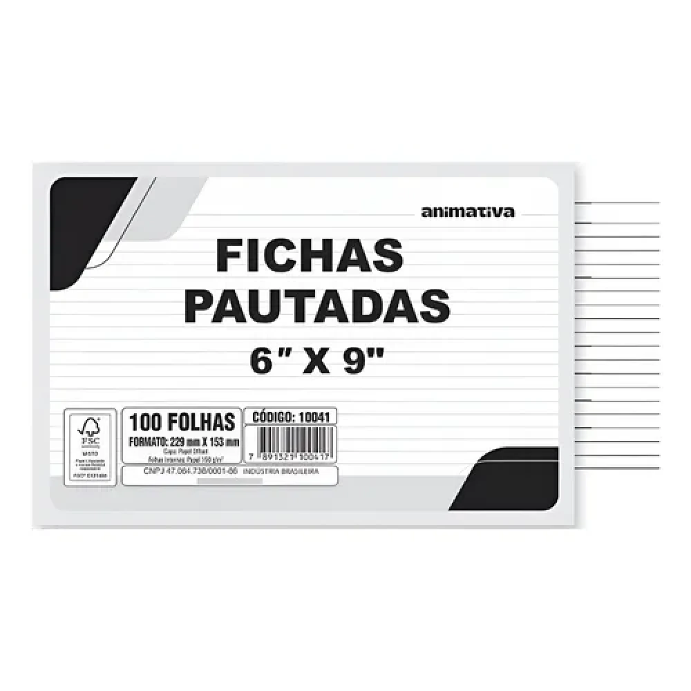 Ficha Pautada 6x9 Animativa com 100 Fichas Para Fichário