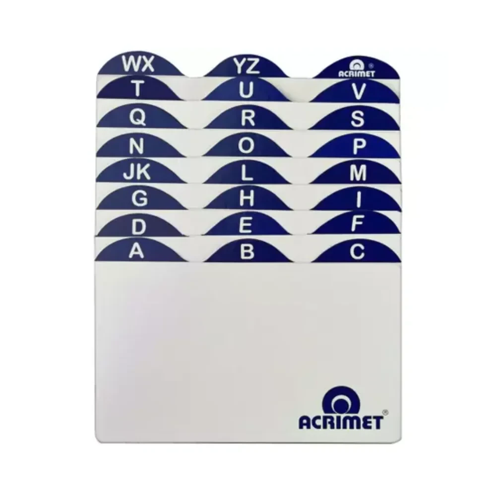 Com o Índice para Fichas 3x5 Acrimet você deixará o seu fichário de mesa mais organizado e sofisticado. Desenvolvido em cartão envernizado, ele possui abas de identificação ordenadas de A/Z com impressão em azul, que proporciona facilidade na hora de padronizar suas fichas. Perfeito para usar no escritório.