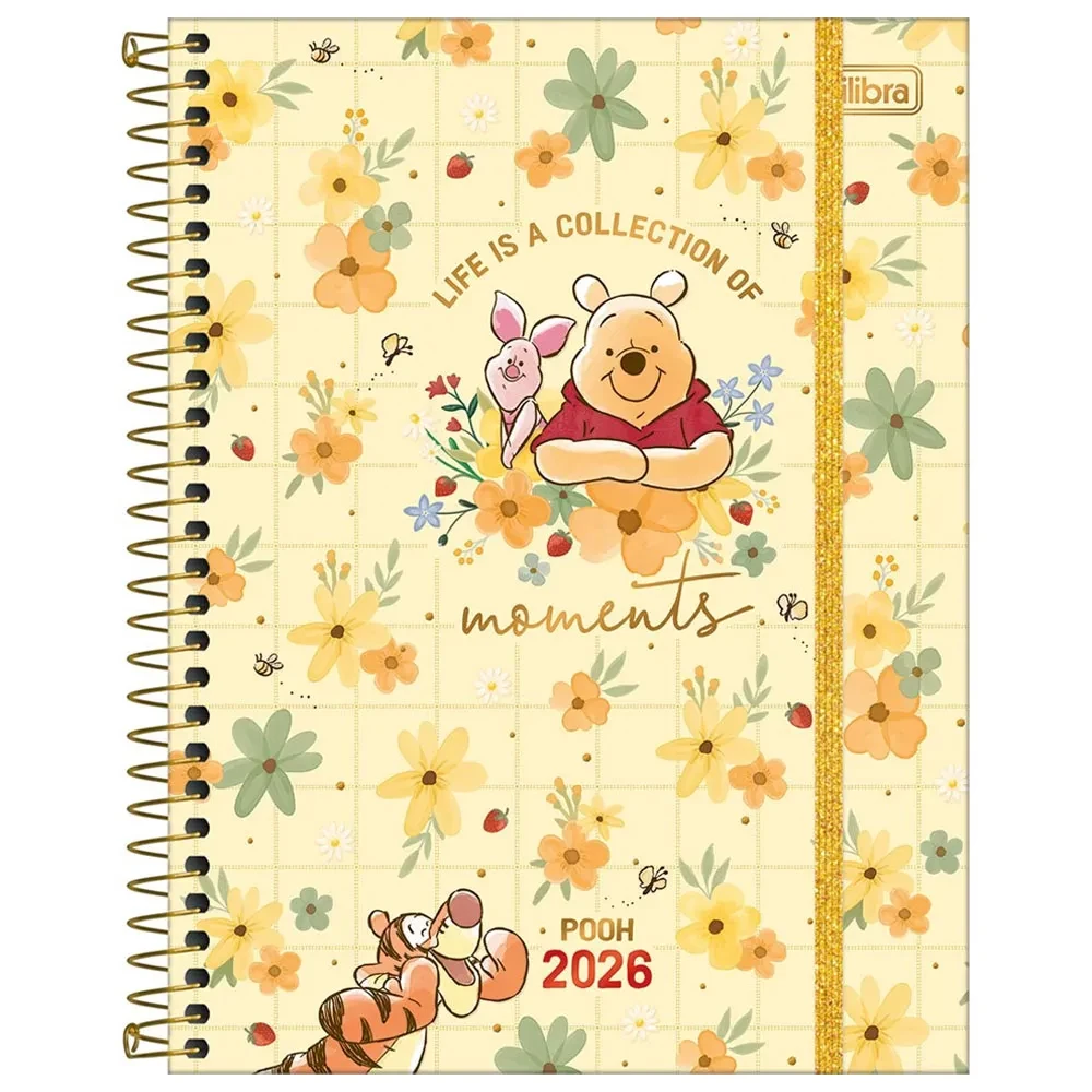 A Agenda Espiral Planner Pooh M7 2026 TILIBRA combina organização, fofura e funcionalidade para transformar seu ano em algo especial. Inspirada no querido personagem Ursinho Pooh, ela é perfeita para quem adora planejar o dia a dia com um toque de magia e nostalgia.