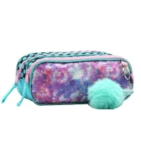 Produzido em Nylon600D, material resistente e fácil de limpar, o estojo garante durabilidade no uso diário. Conta com 2 compartimentos com fechamento em zíper, que permitem separar e organizar lápis, canetas, borrachas e outros acessórios escolares de forma prática. Além disso, o chaveiro pompom fofo dá um toque divertido ao design.