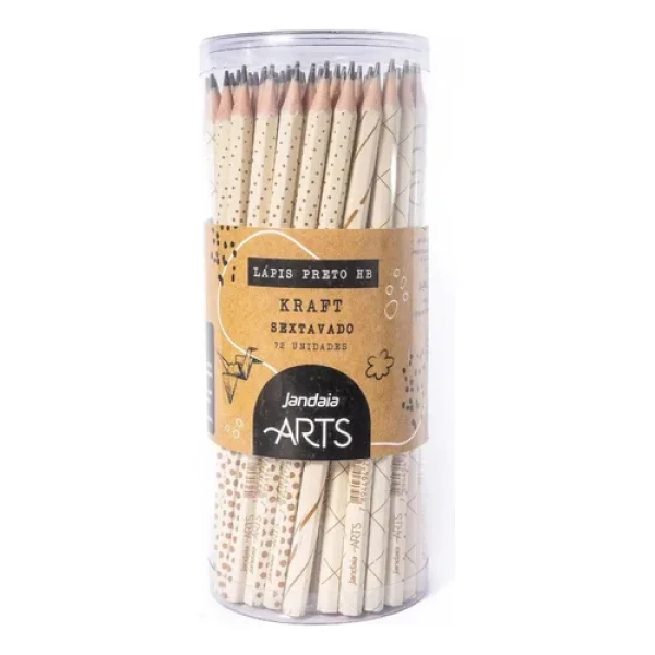 Novidade Jandaia ARTS, Lápis Preto HB com corpo sextavado e com variações de estampa, seguindo a moderna Linha Kraft, uma criação Jandaia.
