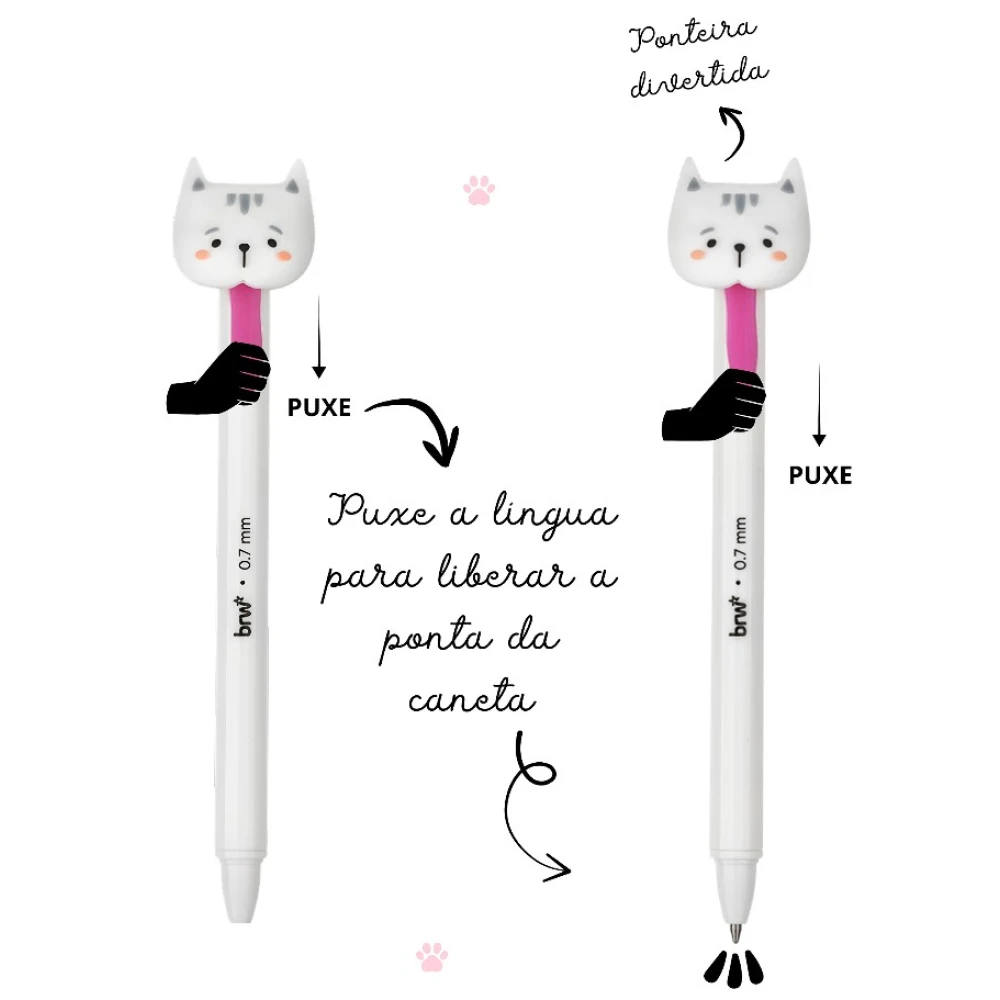 puxe a língua do cachorrinho ou gatinho e veja a ponta 0.7mm ser liberada para escrever!