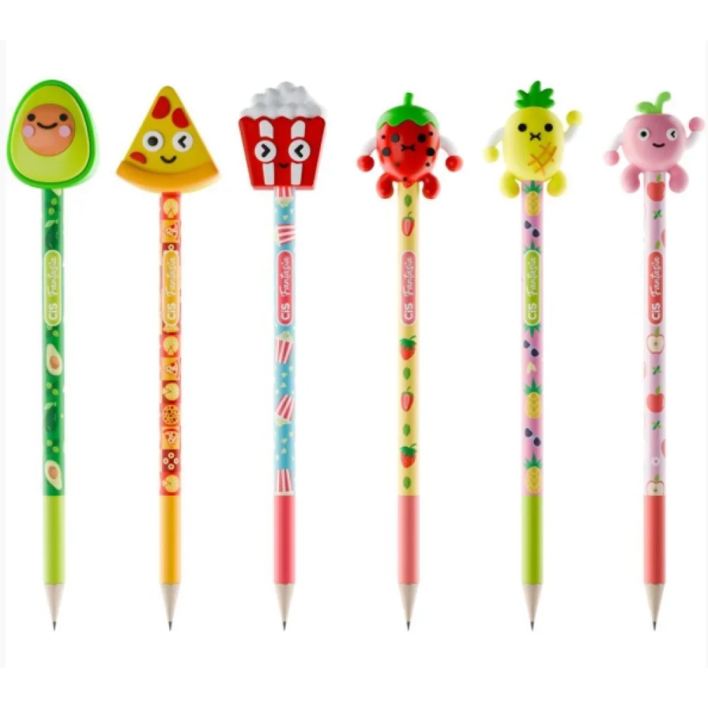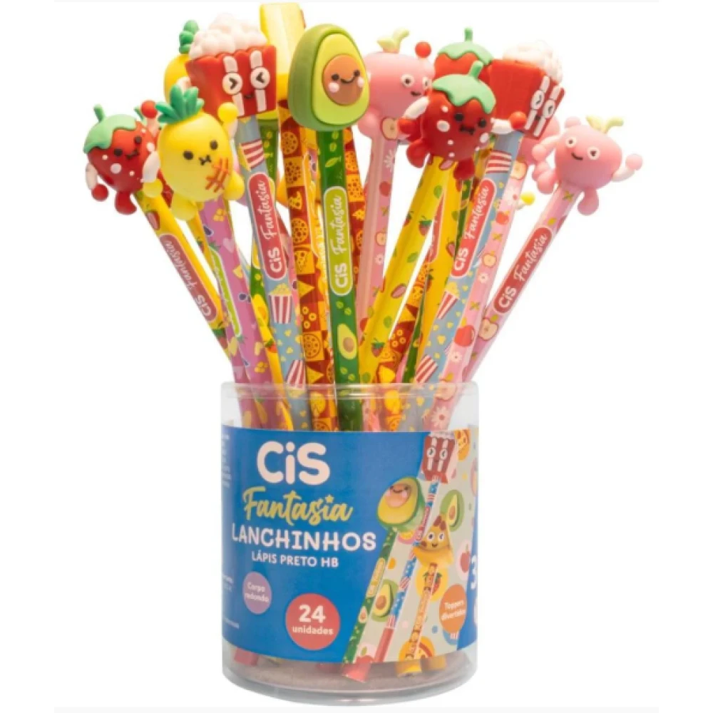 O Lápis Preto Redondo Decorado Cis Fantasia Lanchinhos é perfeito para quem ama unir funcionalidade e estilo. Com graduação HB, proporciona traços macios e precisos, ideais para escrever, desenhar ou usar na escola e no dia a dia.