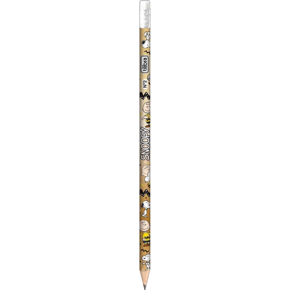 Já imaginou ter o cachorrinho mais famoso do mundo ao seu lado nos estudos? Isso se tornou possível com o Lápis Preto Redondo com Borracha nº2 Snoopy da Tilibra. O produto, fácil de apontar, resistente e com um traço macio, é ideal para escrita e desenhos. Certificado pelo Inmetro, o lápis preto escolar da Tilibra vem unitário com 190 mm de comprimento, borracha na ponta e corpo redondo, com efeito metalizado e estampa do Snoopy.