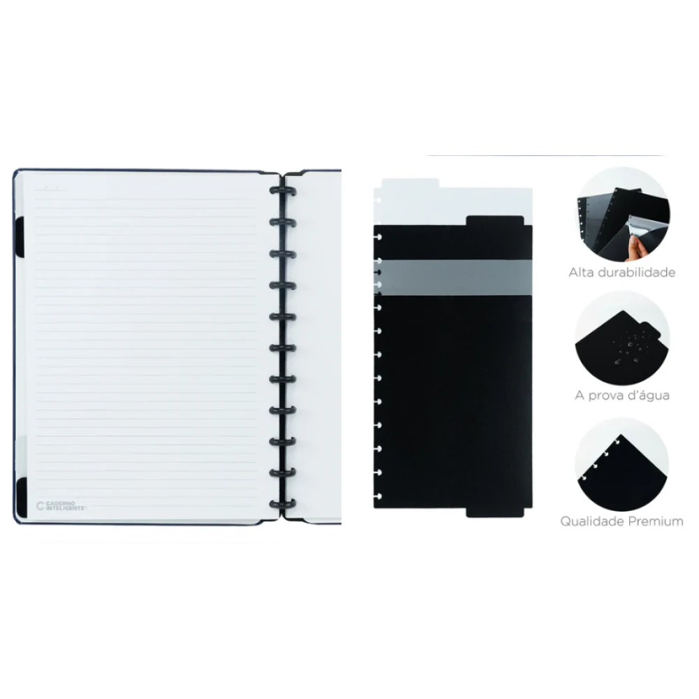 A Caderno Inteligente possui cadernos completamente personalizáveis, com folhas que podem ser reposicionadas ou acrescentadas da maneira como desejar e acessórios exclusivos da marca. Design moderno e praticidade no seu dia a dia!