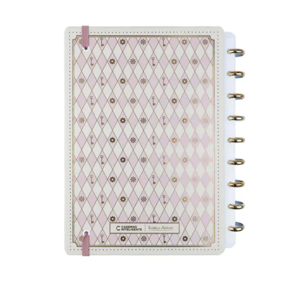 Desenvolvido em tons suaves, acabamento hotstamping dourado e discos metalizados dourados, o Caderno Rose Key by Isabela Akkari chegou para transformar a sua rotina a cada anotação e memória.