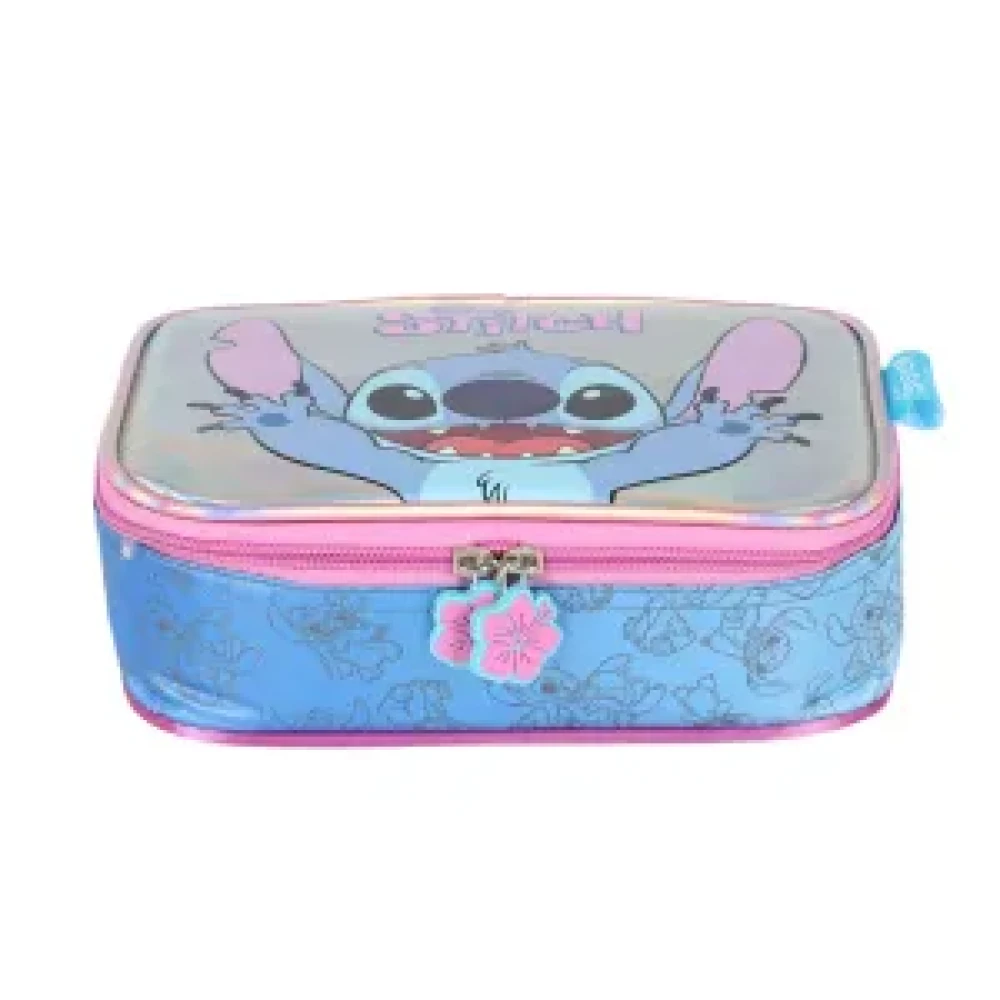 Com design em tons de azul vibrante e estampa exclusiva do Stitch, o estojo é licenciado oficialmente pela Disney e reflete o equilíbrio perfeito entre durabilidade e estilo.