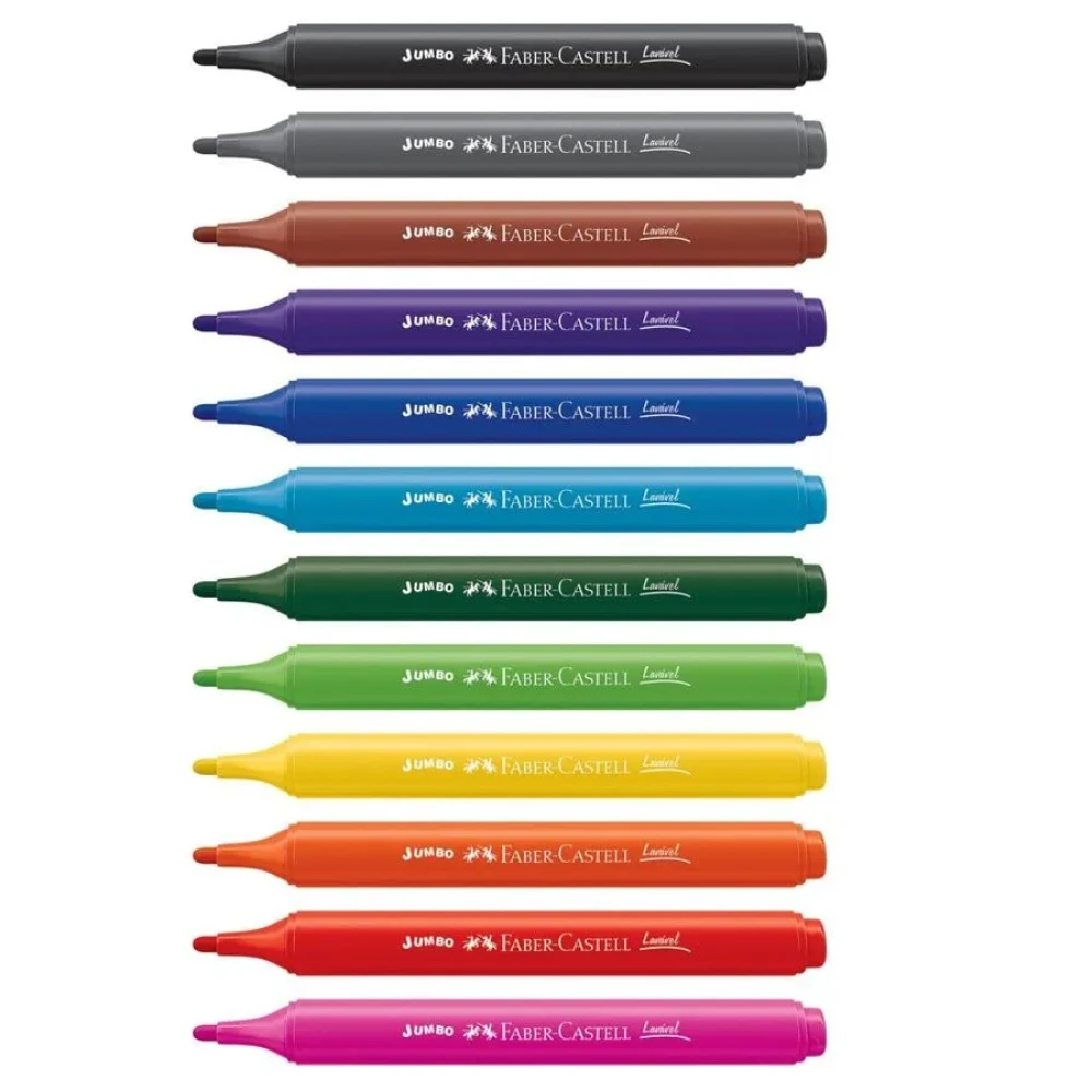 As canetinhas hidrográficas Faber-Castell da linha Jumbo estimulam a criatividade das crianças com a formulação exclusiva de corantes de alta qualidade com cores mais vivas