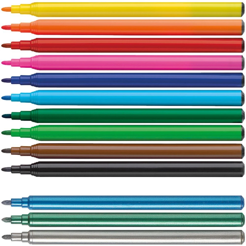 Canetinha Hidrográfica Unicórnio 10 +3 Cores – Faber-Castell A Coleção Unicórnio acaba de aumentar! Chegou o estojo de Canetinhas Hidrográficas Unicórnio, são 10 cores + 3 cores com efeito glitter, perfeito para uso na escola e em casa. Além disso, acompanha uma cartela de adesivos e QR Code na embalagem com acesso a desenhos de unicórnio para colorir. É pura diversão! Características do produto: Canetinha hidrográfica Personagem: Unicórnio 10 canetinhas + 3 canetinhas com glitter Acompanha cartela de adesivos Composição: Tinta: água, corantes e umectantes e partículas de efeito; Corpo e tampa: resinas termoplásticas; Pavio e ponta: fibra. Produto atóxico