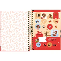 O Caderno Espiral Capa Dura 1/8 Brownie 80 folhas possui espiral colorido, capa dura com a parte interna estampada, adesivos e 80 folhas pautadas e decoradas.