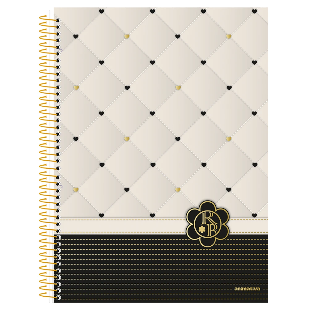 Formato: 200 x 275 mm Folhas: 80 Capa dura- com 4 opções de capas Papel 56gm Espiral: Dourado Com Bolsa, Adesivo e Separador próprio Hot Stamping Dourado