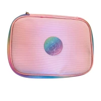 Se você ama itens fofos e cheios de personalidade, esse estojo nécessaire rosa brilhante vai conquistar seu coração! Com acabamento cintilante e um zíper arco-íris super colorido, ele é perfeito para guardar maquiagens, itens de papelaria, acessórios ou o que mais você precisar com muito charme.