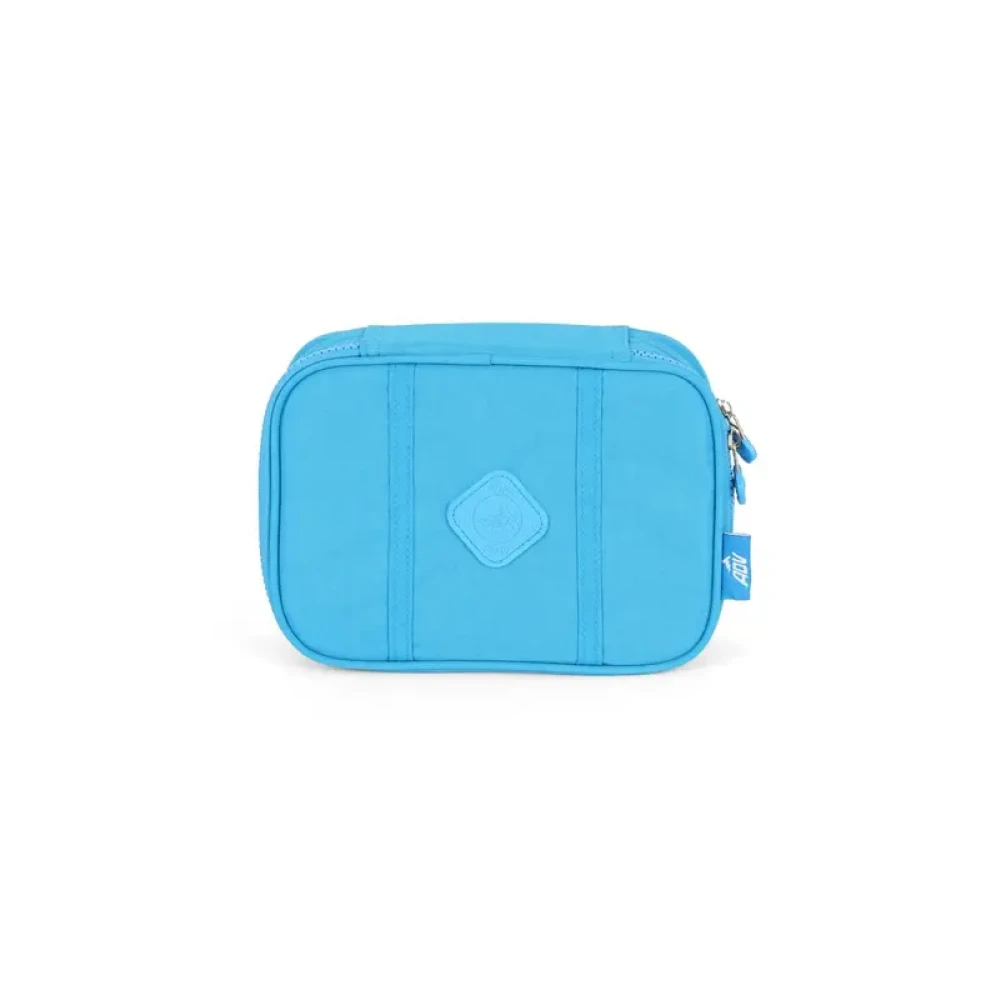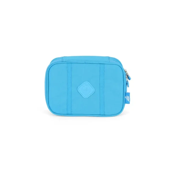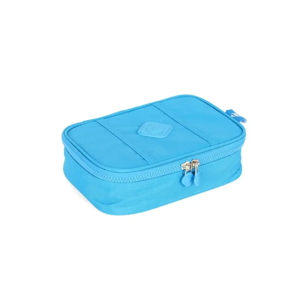 Produzida com material 100% poliéster, compartimento interno com extensão, capacidade para 36 lápis, acabamento em costura contrastante, fechamento com zíper.