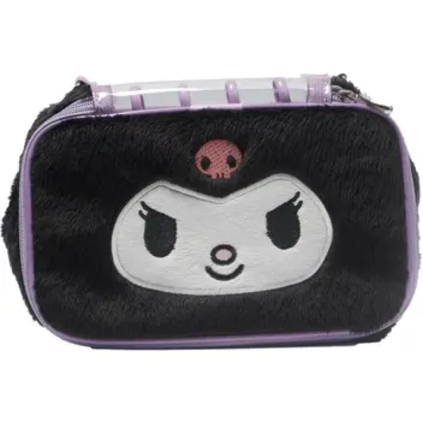Estojo Pelúcia Kuromi Pelúcia Big 50 - Obi do Brasil , Produto licenciado Sanrio , confeccionado em tecido pelúcia e estampa bordada de personagem Kuromi com o exclusivo Sistema DisClick patenteado pela Obi Brasil, composto por 4 discos de ABS e um sistema de acessórios reposicionáveis. Contem na embalagem uma aba de elásticos para 14 lápis ou canetas e um amplo espaço para itens de papelaria. Possuem duas argolas pequenas de metal, que possibilitam clicar uma alça comprida para uso lateral ou a tiracolo. pode virar um bolsa lateral ou necessaire para utilizar em diversos ambientes e momento durante todos dias . Torna se um produto versátil e multiuso .