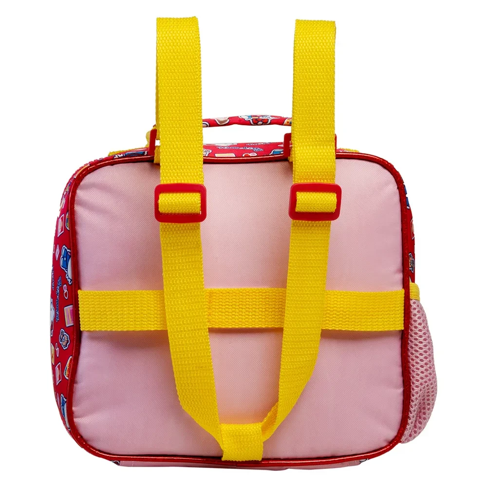 Hora do lanche com gostinho de carinho! A Lancheira Hello Kitty R é um verdadeiro desfile de cores, doces e muita fofura. Inspirada em uma confeitaria encantada, ela traz Hello Kitty e sua amiga Tiny Chum prontinhas para acompanhar os pequenos em todos os momentos — seja na escola ou nos passeios. Lancheira em cetim, com a frente com relevo, piping com gliter. Alça de mão forrada, para melhor conforto, interior ideal para conservar a temperatura dos alimentos e bebidas — mantendo o lanchinho fresquinho e seguro até a hora de saborear! Puxadores emborrachados personalizados com a Hello Kitty e Tiny Chum, que dão um charme a mais e facilitam o manuseio para as mãozinhas pequenas. Bolsos laterais em mesh rosa, ideais para garrafinhas ou itens extras que precisam estar sempre à mão. Detalhes lúdicos por toda a lancheira, com estampas coloridas de docinhos, bloquinhos, laços e cartinhas de amor espalhadas pelas laterais, criando um universo fofo e divertido. Com essa lancheira, a hora do recreio vira um momento ainda mais gostoso, cheio de cor, alegria e doçura! Porque com a Hello Kitty por perto, até o lanchinho vira uma festa! -Puxadores emborrachados -Frente com relevo -Piping com gliter -Estampa exclusiva