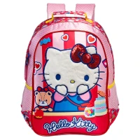 Mochila 16 Hello Kitty R, quando a escola vira cenário de um conto açucarado, só pode ser coisa da Hello Kitty! Essa mochila é pura doçura e alegria, com cores vibrantes, detalhes bordados, pelúcia macia e um laço de paetês que brilha como uma cereja no topo. Um acessório encantador para acompanhar as pequenas em todas as aventuras do dia a dia! Mochila em cetim, painel frontal com rosto da Hello Kitty em pelúcia ultra macia, com acabamento bordado e contornos azuis. O destaque fica por conta do laço em paetês vermelhos, que dá um toque glamouroso e divertido à peça! Acompanhada da charmosa Tiny Chum, a melhor amiga da Hello Kitty, bordada ao lado da personagem – um toque de ternura para encantar ainda mais. Bolsos laterais em mesh rosa com cetim e elástico amarelo. Puxadores personalizados emborrachados, estampa lateral cheia de detalhes, com Hello Kitty em diferentes poses, doces, cartinhas e muitos elementos que deixam tudo ainda mais lúdico e divertido. -Puxadores emborrachados -Estampa nas alças em silk -Alça de mão em poliéster