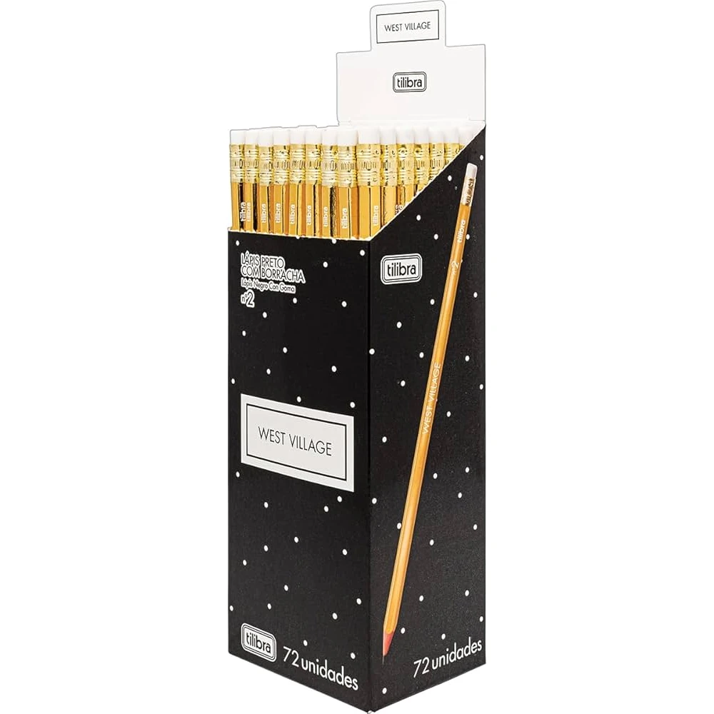 Fácil de apontar, resistente e com um traço macio, o Lápis Preto Sextavado com Borracha N.2 West Village Dourado é ideal para escrita, desenhos ou esboços, sendo indispensável para seu material escolar ou escritório.