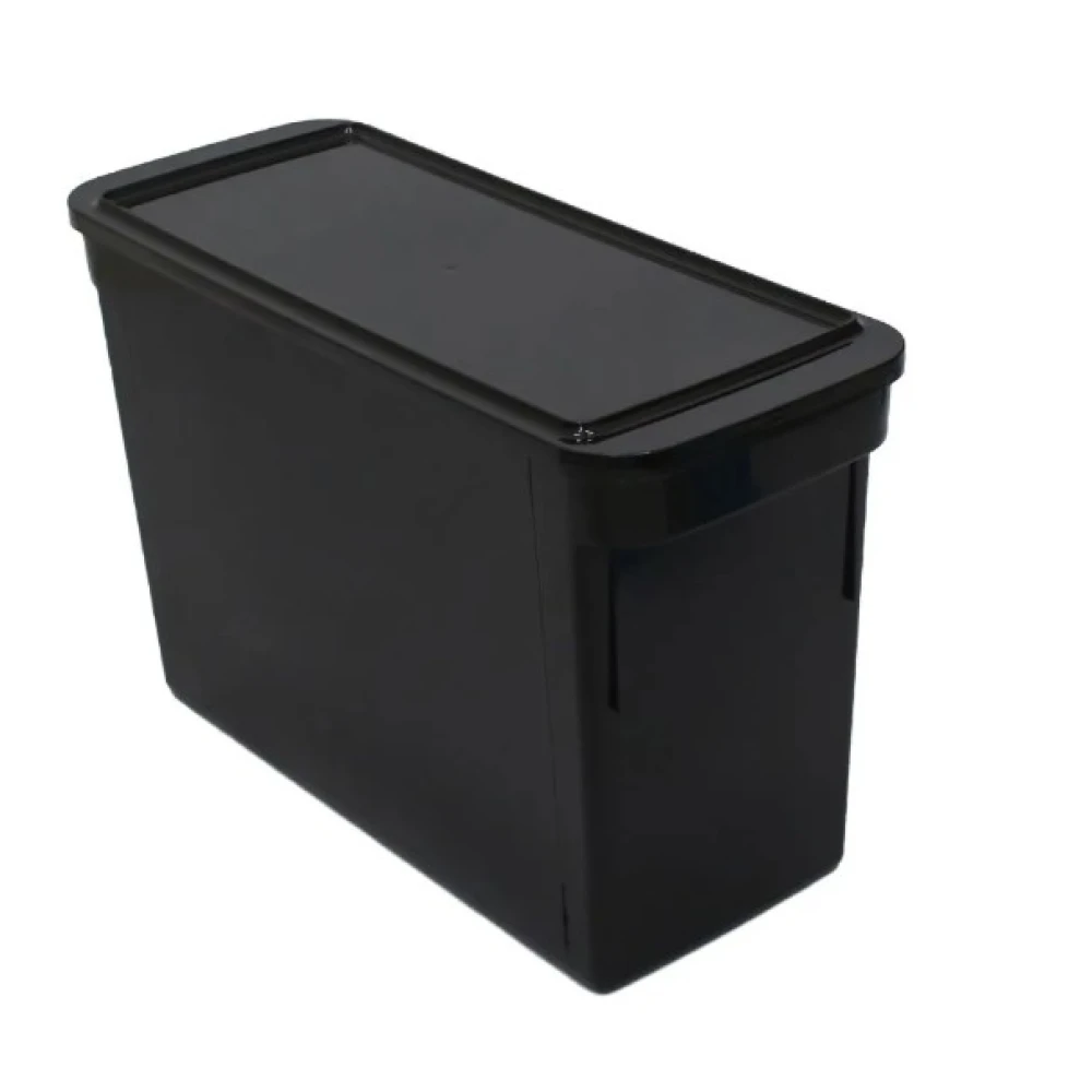 Disponíveis nas cores preto e branco, os modelos com tampa oferecem maior proteção contra poeira e sujeira, enquanto os modelos vazados e sem tampa facilitam a visualização e o acesso rápido ao conteúdo armazenado.