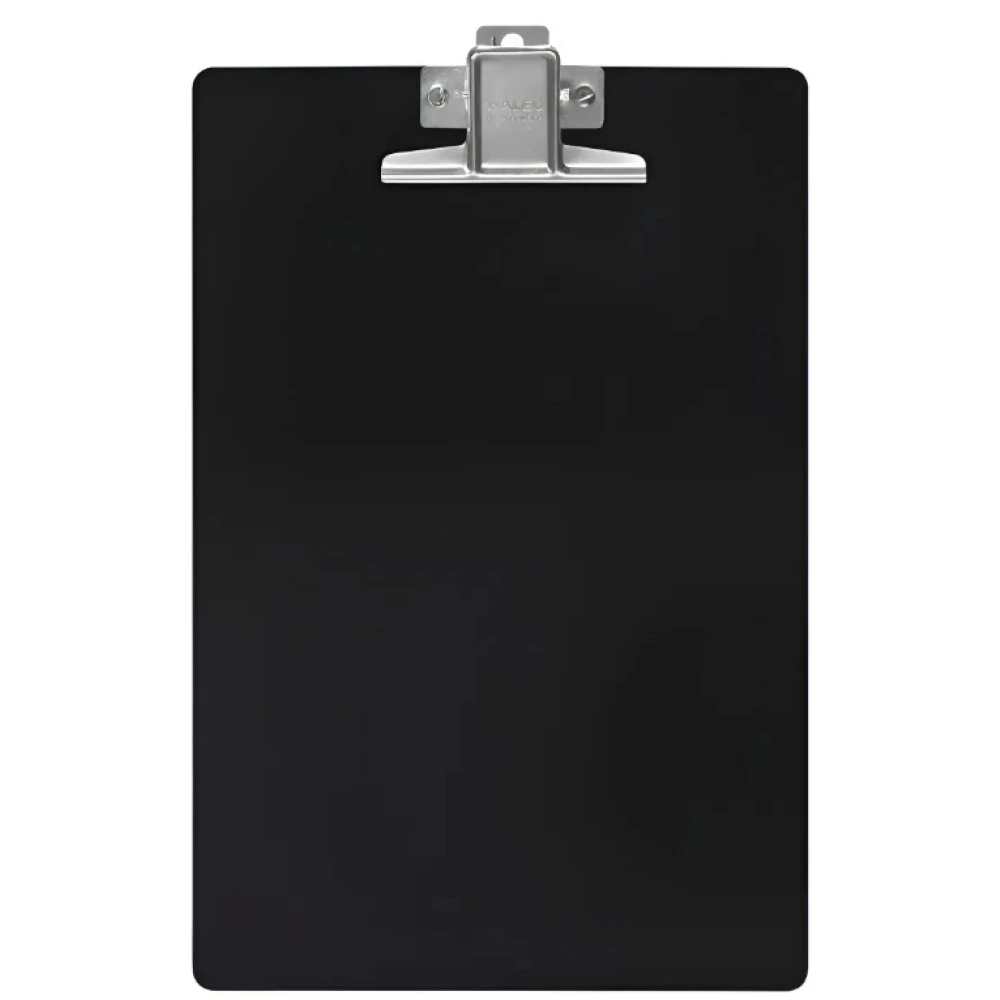 Prancheta Plástica Oficio Waleu Preta com Prendedor Metal As pranchetas da Waleu são ideais para organizar papéis e fichas, além de facilitar a escrita com as folhas nas mãos, sem precisar de apoio. Indispensável para o uso em escritórios, escolas, expedições e no dia a dia. - Marca: Waleu - Linha Office - Modelo: Super Metal - Cor: Preta - Lisa na parte da frente - Textura na parte de trás - Cantos arredondados - Possui prendedor de metal - Prendedor no formato triangular - Metal banhado em zinco - Espessura: 03mm - Dimensões (L x C): 230 x 344 mm - Composição: Plástico Poliestireno - PS - Referência: 10260021 - Contém 01 peça