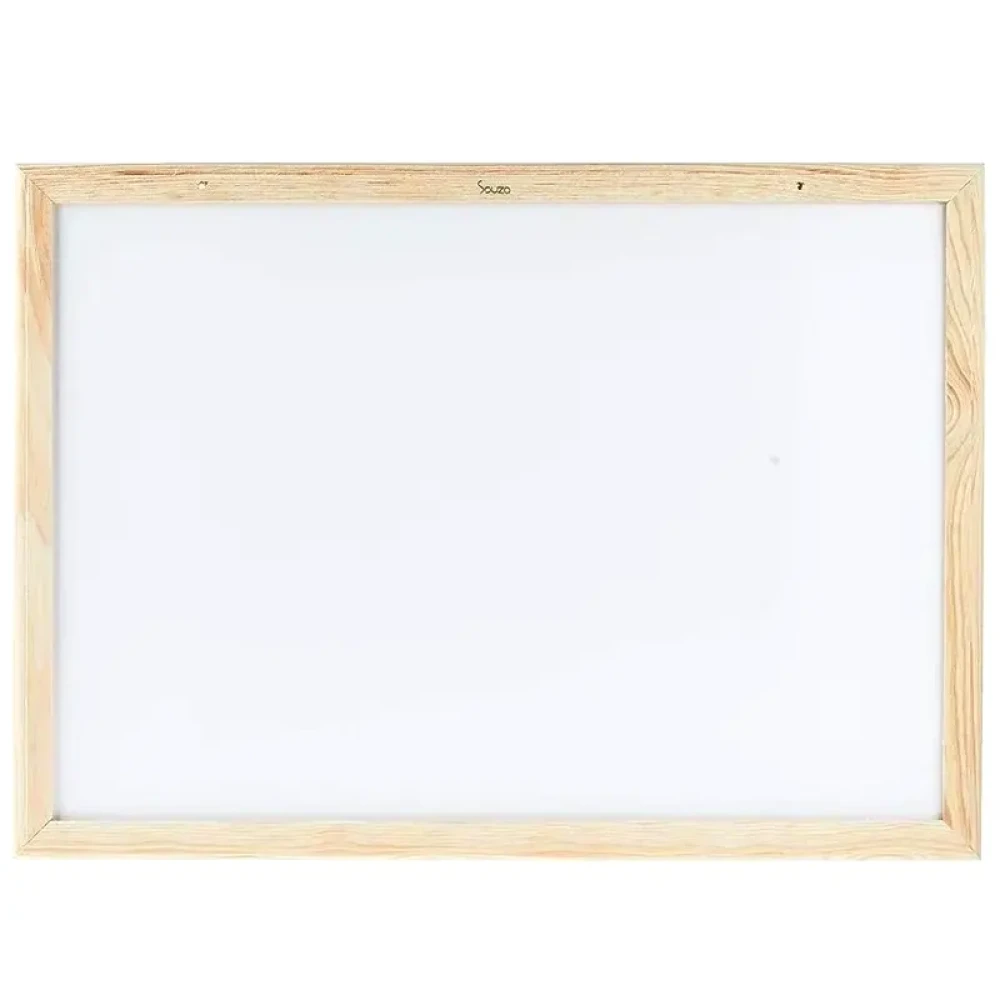 é um modelo de 90x60 cm com moldura em madeira pinus, ideal para uso em escritórios, escolas ou residências para anotações e avisos.