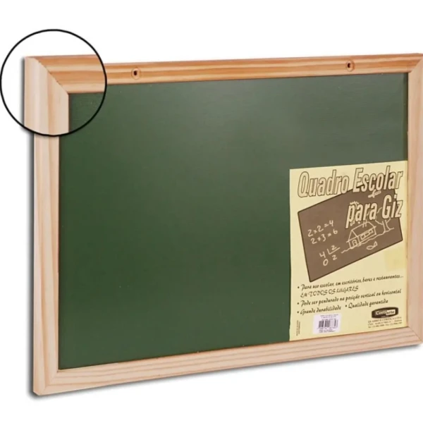 Fabricado com uma chapa de fibra de madeira de 3mm e revestido com pintura especial na cor verde lousa, ele proporciona durabilidade e uma escrita clara. Sua moldura de madeira robusta (12mm x 20mm) garante resistência e um acabamento elegante, tornando este quadro ideal para diversas aplicações.