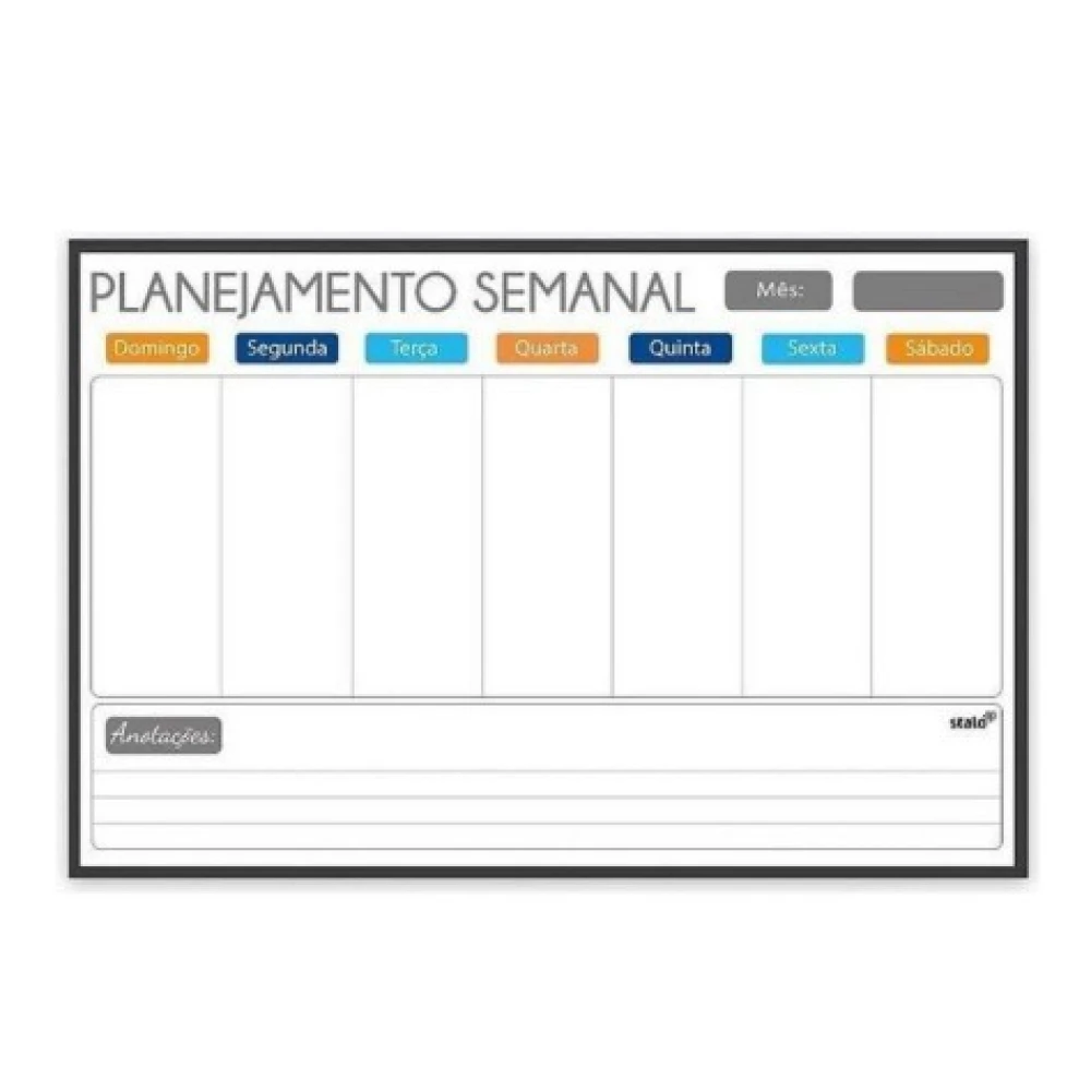 Indicado para uso em escritórios, salas de reunião e home office, facilita a organização semanal de tarefas. Proporciona praticidade e melhora a visualização das atividades, otimizando o fluxo de trabalho.