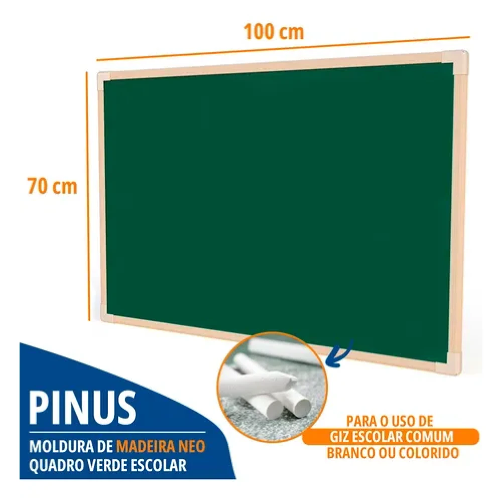 Com esta lousa você poderá organizar seus estudos, palestras e até mesmo dar aulas com muita praticidade, agregando benefícios para seu dia a dia! Produzida em materiais de qualidade, a Lousa possuí moldura Pinus Neo e um belo acabamento em pintura UV brilhante em chapa de fibra, onde o quadro verde é perfeito para riscar com giz. Além disso, também conta um kit fixação invisível para que ele fique impecável em sua parede.