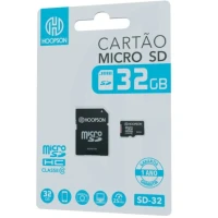 Capacidade: 32 Gb, Tipo: Micro SD HC, Classe: 10, Taxa de transferência: até 25Mb/s