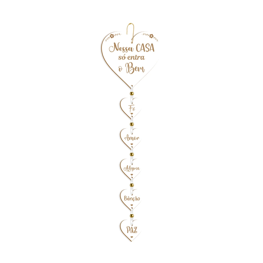 Design: Formato de coração alongado, ideal para ser usado como enfeite de porta, parede ou em composições de guirlandas.