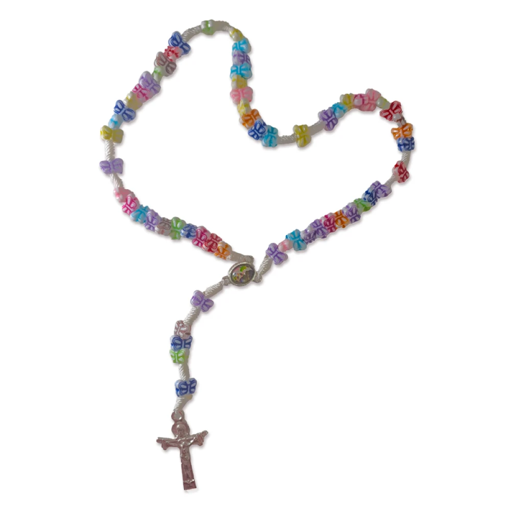 O terço infantil é uma bela e encantadora versão adaptada especialmente para crianças. Com suas cores e design cativante, ele é perfeito para introduzir os pequenos ao maravilhoso mundo da oração e da devoção.