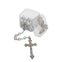 O Terço da Eucaristia, uma peça sagrada e delicada que simboliza a presença de Cristo na Santa Eucaristia. Este terço é feito com contas de 6mm, proporcionando um tamanho perfeito para uma experiência de oração tranquila e reflexiva.
